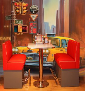 Die Dinerbooth-Reihe – Dinersitzgruppen mit Einzel- und Rücken an Rücken Dinerbank